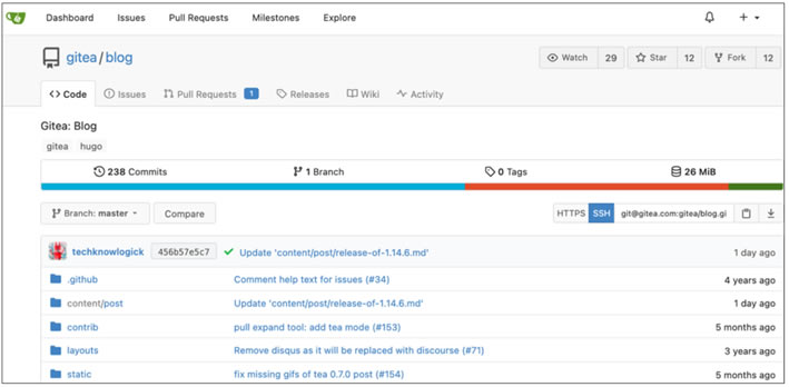 Gitea 是一个用 Go 编写的快速且易于使用的自托管 Git 服务器应用。 Gitea包括存储库文件编辑器、项目问题跟踪、用户管理、通知、内置 wiki 等等。Gitea 是一个轻量级的应用程序,可以安装在低功耗系统上。 如果我们有在寻找具有更小的内存占用的 Gitlab 替代品,并且您不需要 Gitlab 提供复杂的功能的,那我们可以使用比较简单的 Gitea。